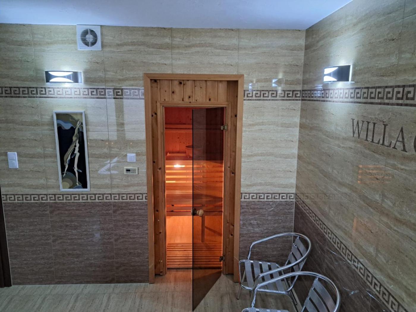 Zaplecze odnowy biologicznej obiektu Willa Oleńka obejmuje saunę i wannę z hydromasażem.