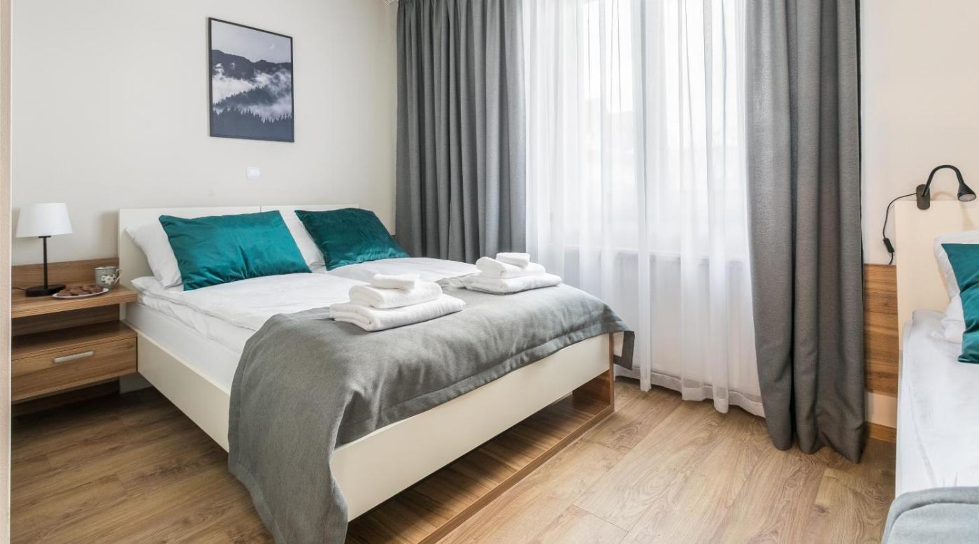 Apartament typu Deluxe. This apartment is comprised of 1 living room, 2 separate bedrooms and 2 bathrooms with a shower. The apartment offers a wardrobe and heating. The unit offers 4 beds. Apartament - 6 osobowy. Powierzchnia pokoju ok.: 46 mkw. ;